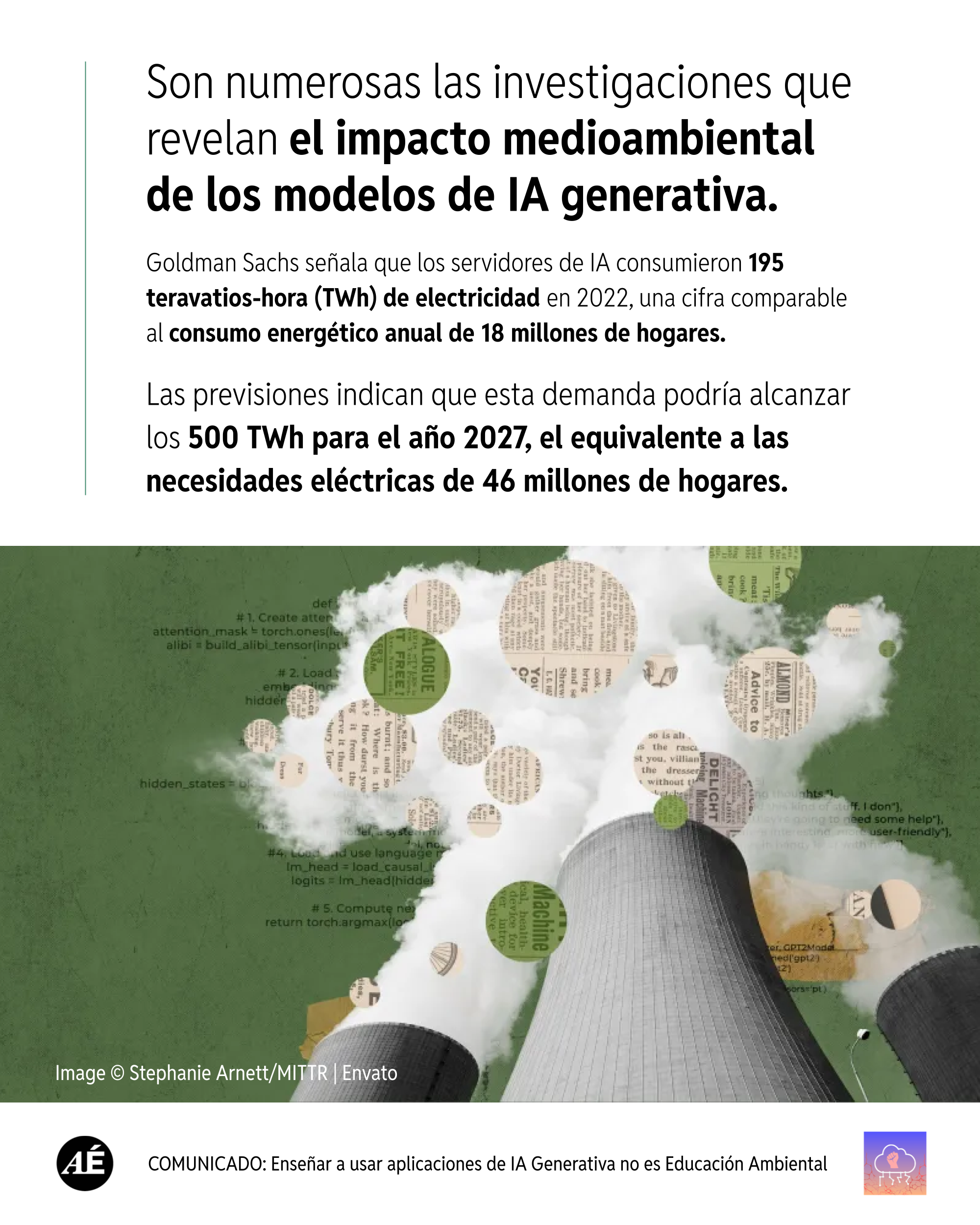 Si tal como nos respondieron vía mail, están convencidos de seguir adelante con esta formación, suponemos que serán conscientes también de que es una completa incoherencia enseñar a utilizar IA generativa siendo una tecnología que está acelerando el deterioro medioambiental.