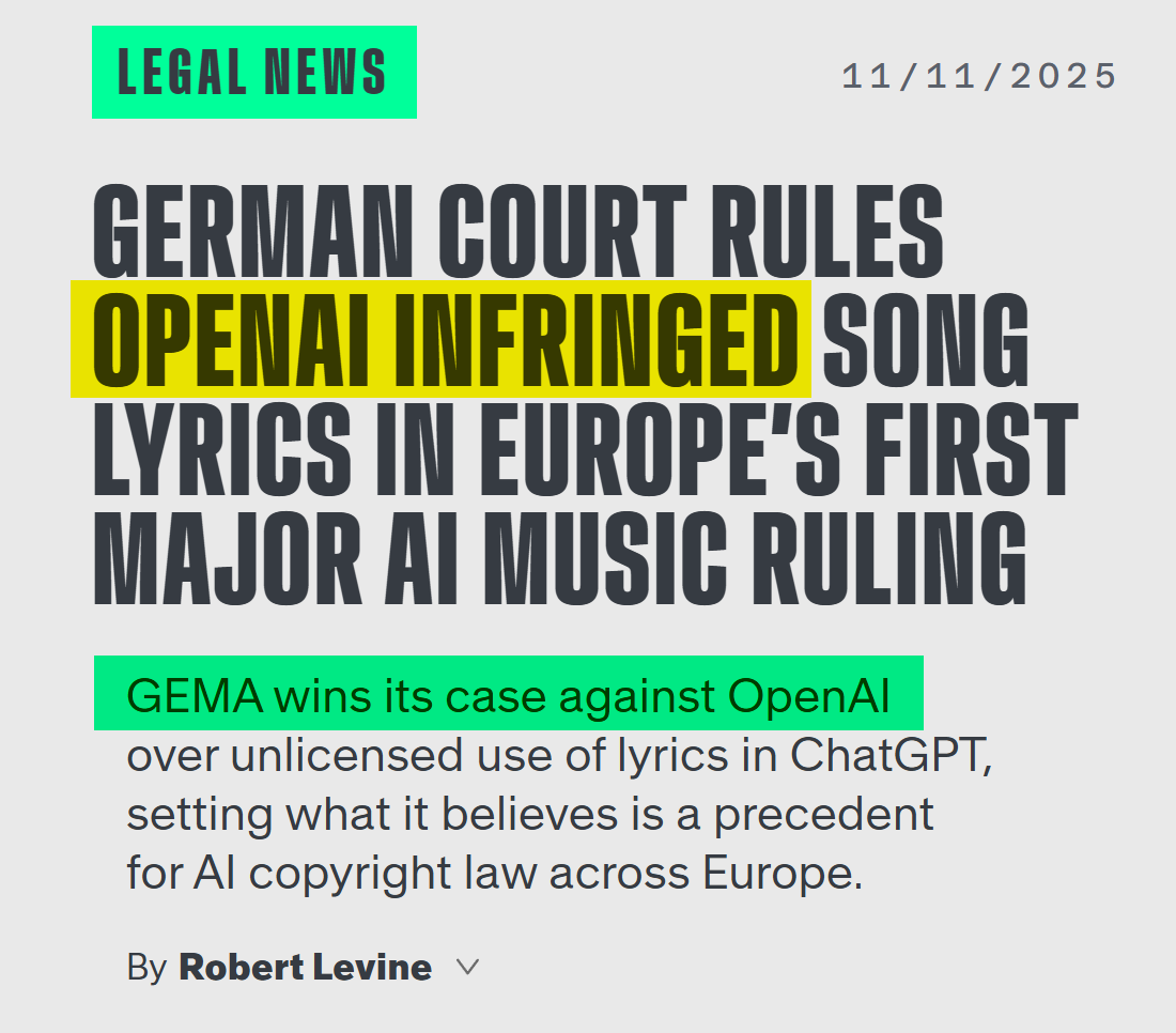 OpenAI pierde juicio en Alemania. Esta es la primera sentencia histórica en Europa sobre IA generativa que falla a favor de los creadores de obras. La forma en que OpenAI gestiona actualmente ChatGPT viola las leyes europeas pertinentes en materia de derechos de autor 🔥